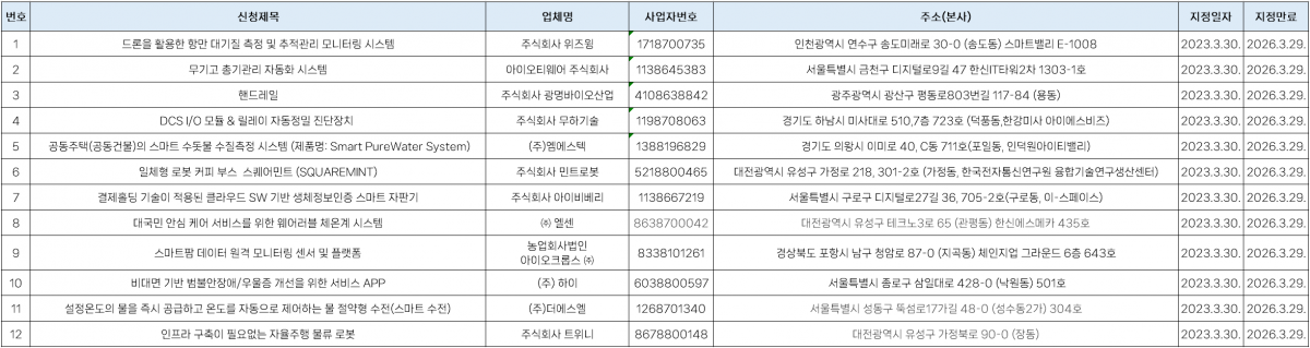 2023년도 혁신시제품 1차 지정 내역