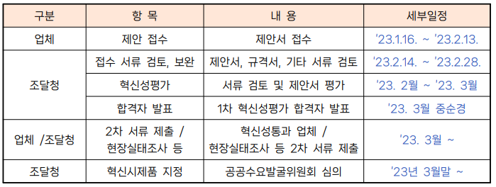 ※ 혁신시제품 지정은 별도의 일정이 없는 경우, 각 분기말(3월말, 6월말, 9월말, 12월말) 결정