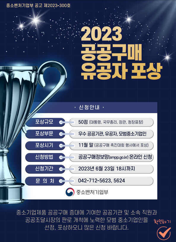 ㅇ 문 의 처 : (포상내용) 중소벤처기업부 판로정책과 044-204-7544, 7547