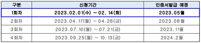 ㅇ 신청기간 : 2023년 2월 1일(수) ~ 2월 14일(화)(연 4회 실시)