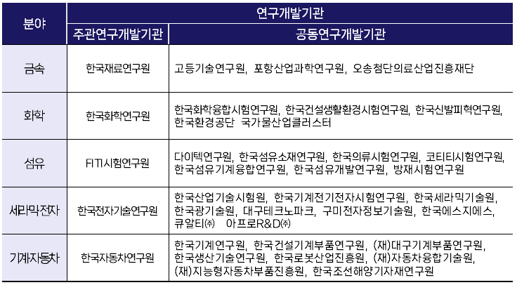 ㅇ 연구개발기관(서비스 지원기관) 구성 현황
