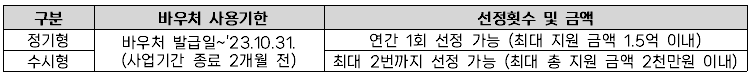 * 바우처 사용기간 : 바우처 발급일 ~ ‘23.10.31.