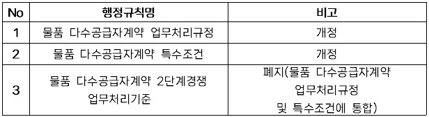다수공급자계약 관련 행정규칙 2종 개정사항 시행 안내