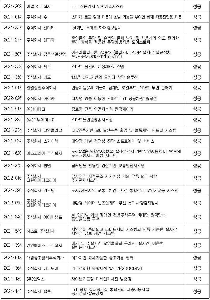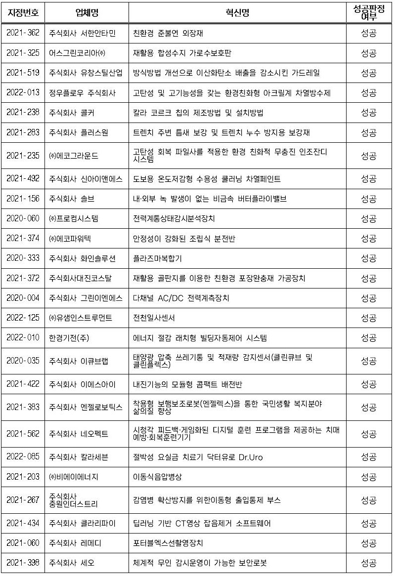 '23년 제2차 혁신시제품 평가 결과(성공업체 리스트 및 완료보고서)