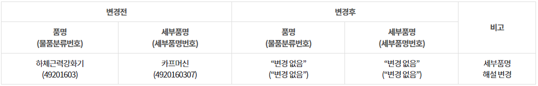세부품명 해설 변경 내용을 아래와 같이 알려드립니다.