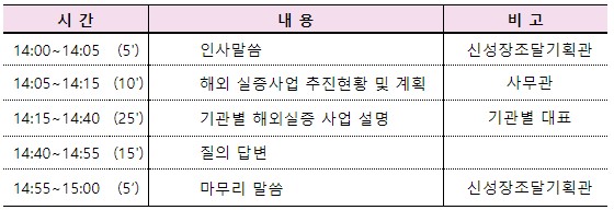 ㅇ (목적) 우리청에서 추진한 혁신제품 해외실증사업의 성과를 공유하고 하반기에 추진 예정인 수출선도형 시범구매사업에 대해 안내