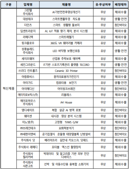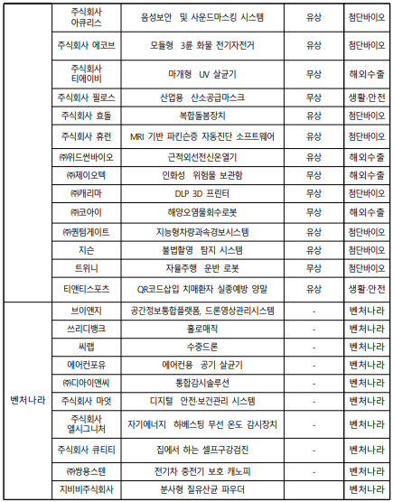 < 선정결과 (혁신제품 38개사, 벤처나라 10개사)>