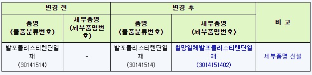 가. 세부품명 신설 내용