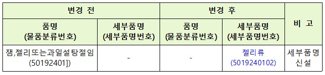 2) 젤리류(5019240102) 품목 분류이동: 2023. 9. 7.(목)