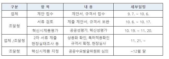 신청방법: 혁신장터(http://ppi.g2b.go.kr) 온라인 신청