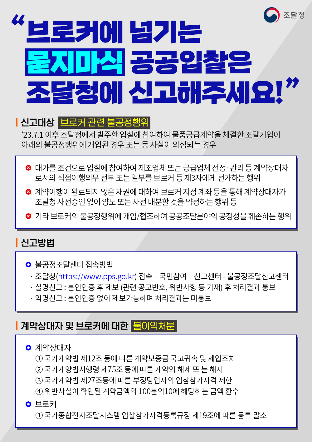 물품(공급)계약에 대한 브로커 불공정행위 관련 신고 안내
