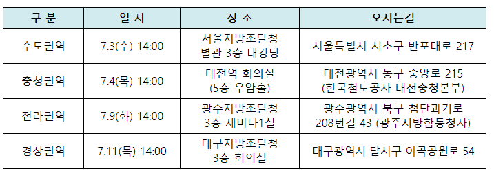 조달청은 2024년 7월 1일부터 시행된 <혁신제품 공공구매 제도 개선>과 관련하여 '권역별로 찾아가는 설명회'를 개최합니다.