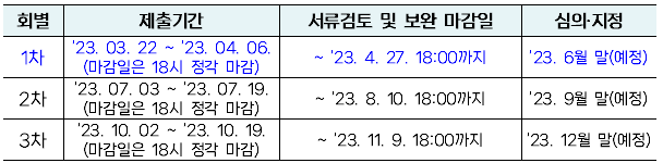 ② 기간 내에 제출한 기업도 ‘서류검토 및 보완 마감일’까지 보완하지 못한 경우 차기에 진행됨을 알려드리오니 착오 없으시기 바랍니다.